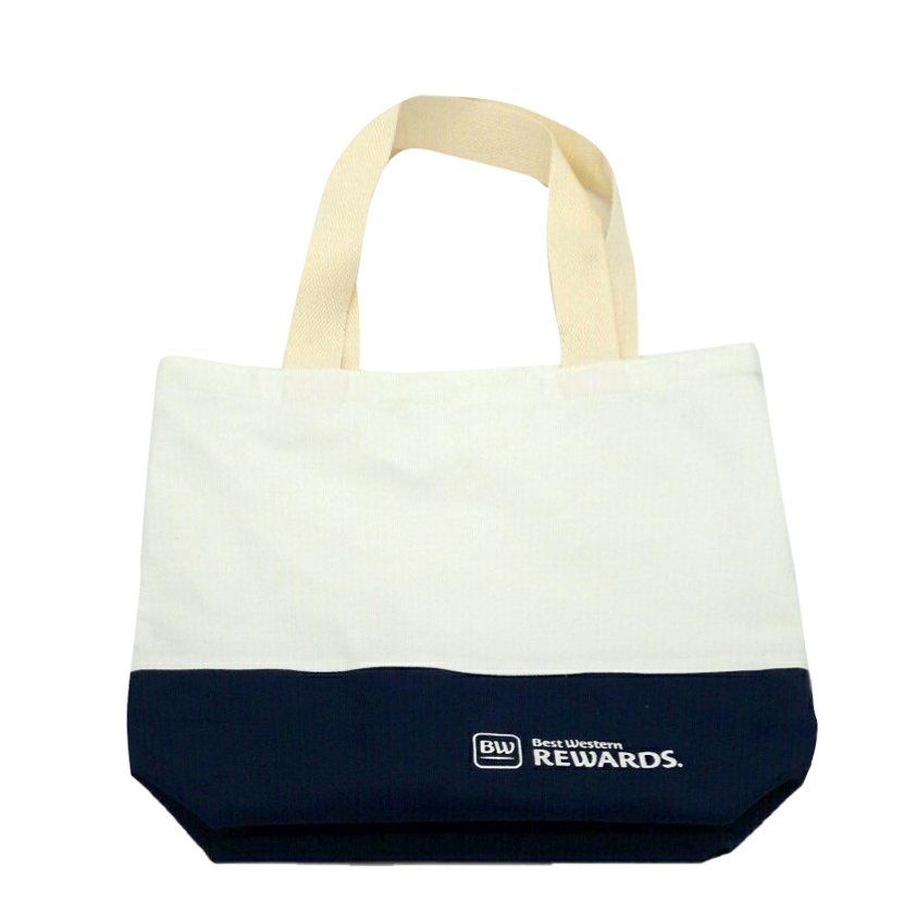 กระเป๋าผ้าแคนวาสสีกรมตัดต่อแคนวาสสีขาว